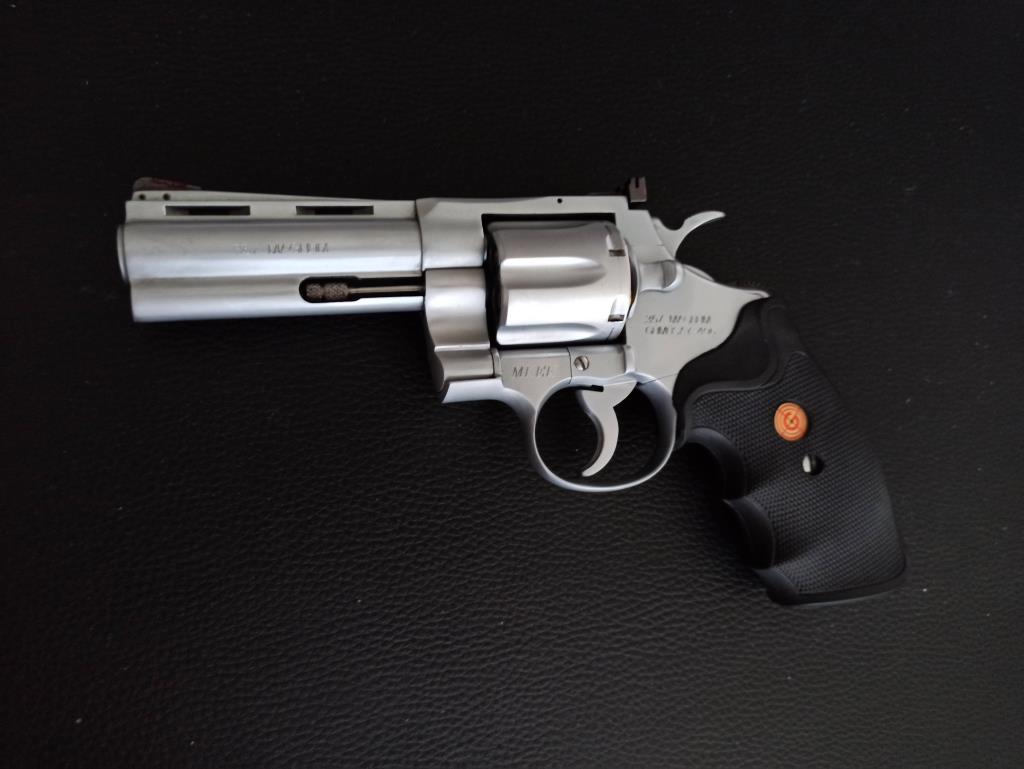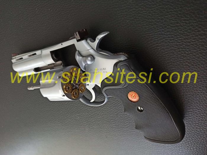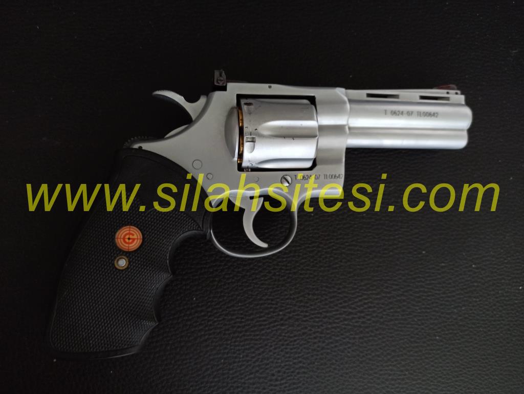 Colt'un efsanevi çift hareketli revolveri Python modeli üzerine inşa edilen yerli versiyonu. 357 Magnum ve 38 Special fişeklerle çalışmaktadır. Ayarlanabilir gez ve boşluksuz bir tetik ile mükemmel bir atış deneyimi sunar. Toplu tabancalar, düzgün tetik çekme ve isabetlilik ile bilinmektedir. Şarjörlü tabancalardan farklı olarak, tutukluk yapma ihtimalinin olmaması ve her an atışa hazır olması tercih sebebidir. Hedef tutturmada mükemmel, atışı ve görüntüsüyle çok keyifli bir tabancadır. Tam namlu altlığı hem namlu ağırlığını dengeler hem de tabancanın kaslı bir görünüme sahip olmasını sağlar. Sağlam yapı ve ekstra metal özellikleriyle dayanıklı ve güçlü bir revolver. Kolayca değiştirilebilir kabza, bu silahı hem atış için hem de görsel olarak çekici hale getiriyor. 2,5 inch, 4 inch ve 6 inch versiyonları mevcut olan tabancam orta boy (4 inch) modelidir. Emniyet mandalı mevcuttur, isteğe göre emniyet aktif veya pasif hale getirilebilmektedir. 100 mermi dahi atılmamıştır, hiçbir mekanik veya kozmetik sorunu yoktur, tertemiz ve yepyenidir. Birçok ateşli silah koleksiyoncusu ve yazar bu modeli "şimdiye kadar yapılmış en iyi toplu tabanca" olarak tanımlamıştır. Namlu Uzunluğu: 4 inç. Gövde: Saten çelik. Kabzalar: 1 adet siyah kauçuk, 1 adet kahverengi ahşap. Kapasite: 6 mermi. Silah hakkında daha fazla bilgi veya görüşmek için lütfen ilandaki telefonlardan arayınız.